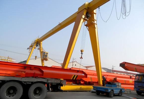 MH modell single girder Dørkran er en slags utendørs kraner utstyrt med CD / MD type elektriske heiser og mye brukt innendørs og utendørs, for eksempel verksted, lager, butikk, jernbane og så videre. Denne typen kran består av hovedstråle, støtteben, bakkebjelke, kranflyvningsmekanisme og kranflyvningsmekanisme.