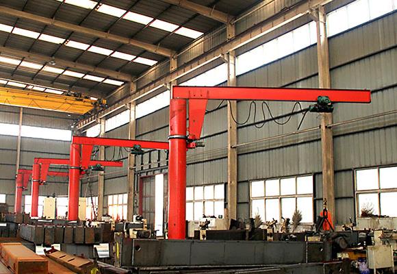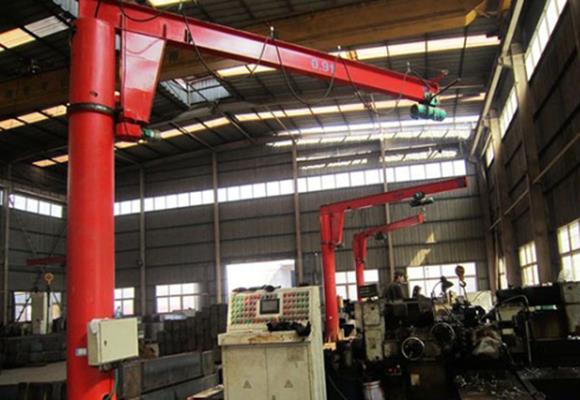 Jib kran er hovedsakelig sammensatt av toppsøyle, lav kolonne, hovedbjelke, hovedbjelkepinne, elektrisk heis, rotasjonsmekanisme og elektrisk system, etc. Jib kran arbeid for lysintensitet, kran med post, roterende armrotasjon og elektrisk heise. Kolonne bunn er festet på betong fundamentet med ankerbolt. Roterende kjørehjul med cykelformet ratthjulsreduksjon. Elektrisk heis på kantstrålene som en rett linje som går fra venstre mot høyre, og løfter tunge gjenstander. Jib Crane har karakteren av hul stålkonstruksjon, lett vekt, stor spenning, løftevekt, økonomi og holdbar. Jib Crane er en ny generasjon av heiseutstyr utviklet for å møte kravet om modernisert produksjon. Jib Crane vedtar også Vest-Tyskland teknologi, har funksjonene med fornuftig struktur, enkel betjening og høy effektivitet, osv. Det er mye brukt i gruver, verksted, lager, kai.
