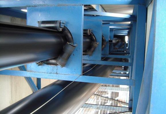 Når transportbåndet har mottatt materialene fra overgangsseksjonen på halen, vil transportbåndet rulles opp i den sirkulære rørformen gradvis, da vil det sirkulære rørbåndet bli påført for å transportere materialene i den forseglede vei, Transportbåndet vil utfolde seg gradvis når materialene blir transportert til hodet overgangsseksjonen til materialene er utladet.