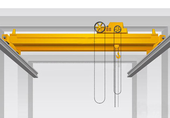 Manuell betjening med dobbeltbjelke kran består av bro, kjøretøykjøring og manuell monorailbil og andre hoveddeler.